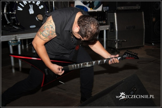 Pod szyldem Szczecin Metal Meeting. wystąpił tego wieczoru także bydgoski Deathinition oraz miejscowi przedstawiciele hard-rocka czyli Vinders. Pierwsza z tych formacji weszła na scenę tuż przed dziewientastą i pół godziny, które miała do dyspozycji wykorzystała moim zdaniem bardzo dobrze. Panowie wspólnie grają około 2 lat, a mimo to udało im się zebrać całkiem niezły zestaw utworów, które na żywo brzmią interesująco. To typowy thrash, bez większych innowacji. Najbardziej przypadł mi do gustu rozbudowany, ciekawie skonstruowany numer "Deathinition", ale także "Kłamstwo dla mas" (poprzedzone przez wokalistę kąśliwym politycznym komentarzem) i kończący całość "Melanż" to solidne, mocne kompozycje.