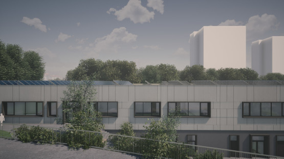 Nowy budynek stanie wzdłuż ul. Stalmacha, w pobliżu skrzyżowania z ul. Rugiańską. Projektanci wykorzystali wnoszący się teren, by zaproponować obiekt ukształtowany tarasowo, zapewniający wyjście z każdej kondygnacji bezpośrednio na zewnątrz.