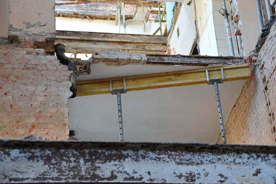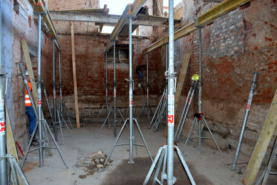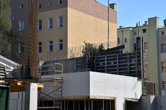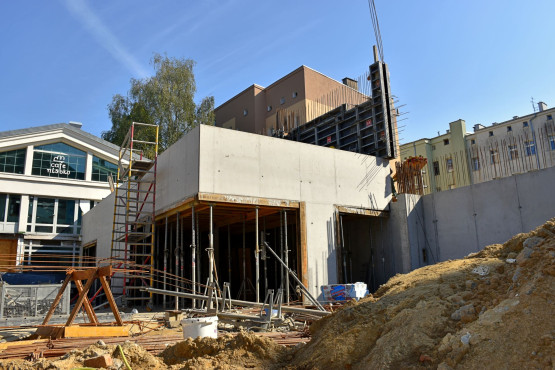 – Wykonywane są słupy oraz zewnętrzne ściany żelbetowe budynku. Trwa montaż szalunków oraz zbrojenia. Z betonu architektonicznego wykonana została już antresola wraz ze stropem. W bliskim sąsiedztwie modernizowanej kamienicy, toczą się prace przy budowie szybu windowego. Rozpoczęto także remont prawej nawy hali, obecnego obiektu Muzeum. Roboty toczą się również na obiekcie starej kamienicy. Oprócz prac rozbiórkowych, obniżono również fundamenty budynku o ok 60 cm – informuje Piotr Zieliński, rzecznik prasowy miasta ds. inwestycji.
