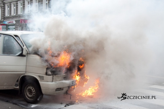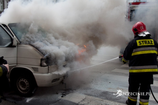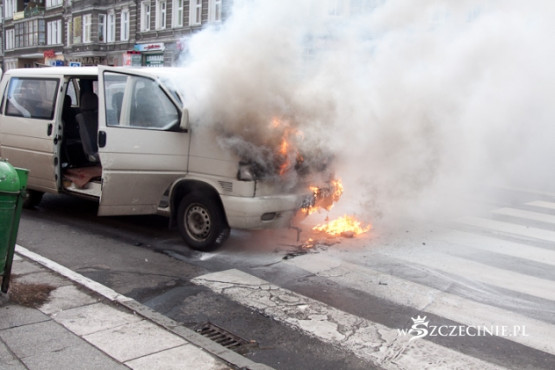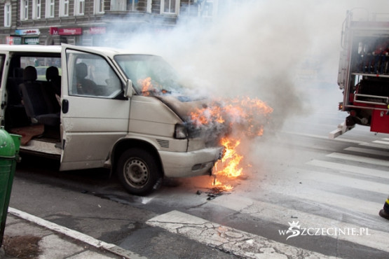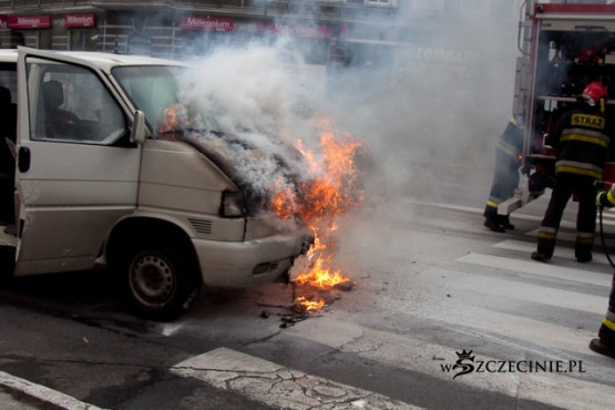 Dziś o godz. 13:15 na skrzyżowaniu al. Wojska Polskiego/Jagiellońska płonął VW Transporter. Nikomu nic się nie stało.