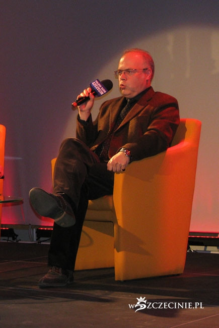 Marek Krajewski pierwotnie chciał publikować pod pseudonimem – nawet zdążył sobie taki stworzyć - mianowicie Reiner Hagen – a było to spowodowane obawą przed ostracyzmem środowiska uniwersyteckiego. Pisanie kryminałów przez asystenta a potem doktora nie mogło się spotkać w tamtych czasach z aprobatą. Jednak wydawca „Śmierci w Breslau” twardo się sprzeciwił i autor pozostał przy swoim nazwisku. Krajewski zatem, od 2007, dzieli rok na czas poświęcony wyłącznie pisaniu (od stycznia do lipca), na czas wakacyjnych wyjazdów a od września do grudnia mamy okres spotkań z czytelnikami, które - widać to było podczas szczecińskiego wieczoru – bardzo lubi. Może wreszcie dać upust swojemu zamiłowaniu do przemawiania oraz panowania nad słuchaczami; z racji efektownego modulowania głosu nazywany był przez studentów „księdzem proboszczem”. I rzeczywiście, oratorskie metody Pana Marka sprawdzały się znakomicie podczas szczecińskiego spotkania, co potwierdzały szczególnie żywe reakcje licznie przybyłych gości.