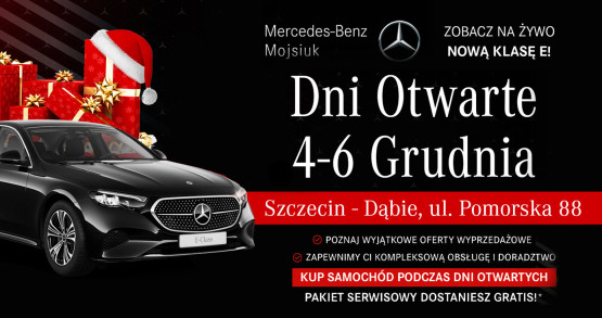 Zapraszamy na Dni Otwarte - 4-6 Grudnia - w naszym salonie Mercedes-Benz Mojsiuk w Szczecin-Dąbie ul. Pomorska 88. Do zobaczenia!