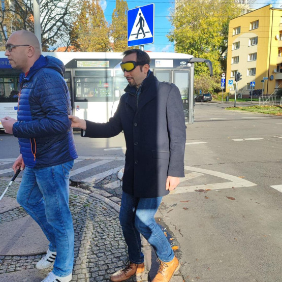– Nie widziałem kompletnie nic od momentu założenia żółtych gogli. W takim stanie zawieziono mnie na miejscu startu. Metą była siedziba Polskiego Związku Niewidomych przy ulicy Piłsudskiego 37 – relacjonuje radny miejski Przemysław Słowik.