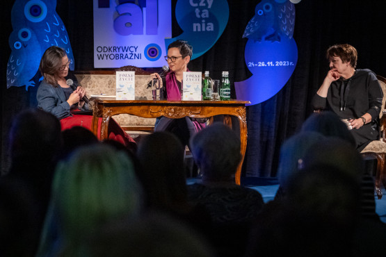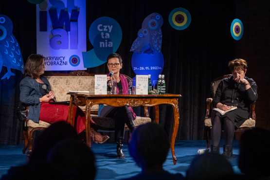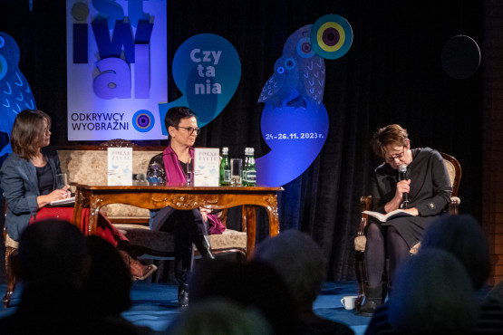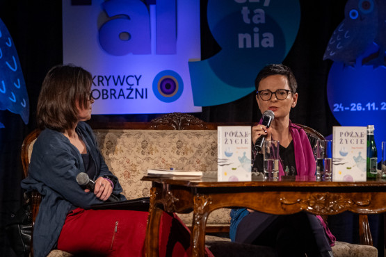W piątkowe późne popołudnie uczestnicy festiwalu mieli okazję posłuchać na żywo jednego z najbardziej znanych głosów w Polsce. Krystyna Czubówna zabrała ich w podróż po „Późnym życiu” – najnowszej powieści Ingi Iwasiów.
