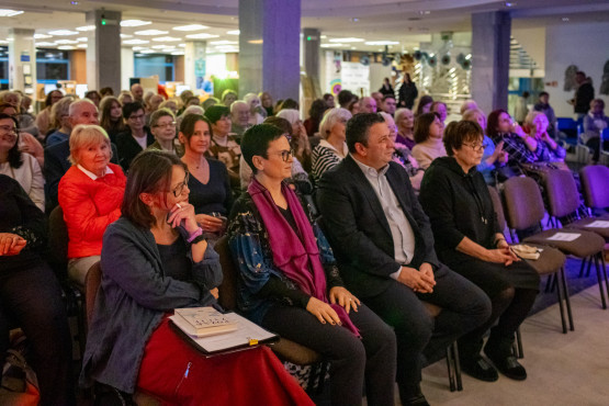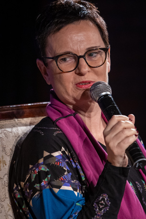 – To nie jest takie oczywiste, że sięgamy po książkę, interpretujemy, staramy się wyczytać sens z zapisanych słów. Usiłujemy się przedzierzgnąć w osobowość autora/autorki. A jeżeli, tak jak w tym przypadku, autorka siedzi obok, to mimo woli poddajemy się krytyce, co może utrudniać to zadanie. To nie była dla mnie łatwa książka – przyznała Krystyna Czubówna.