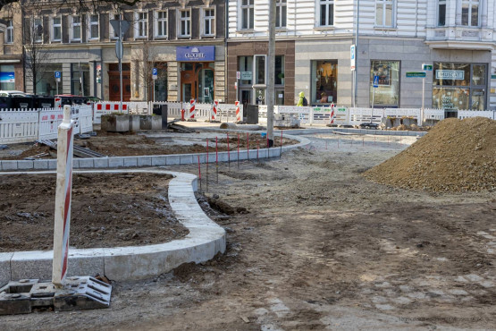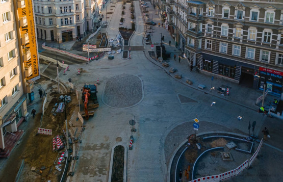 Cały czas wykonywane są także prace brukarskie. Obecnie układana jest nawierzchnia chodników wraz z obramowaniem w rejonie placu Zgody.