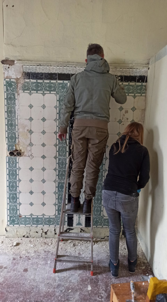 – Te wszystkie płytki były schowane pod tynkiem i linoleum. Z Denkmal Pomorze odkryliśmy ich bardzo dużo. Włożyliśmy w to dużo pracy, ale w grupie siła. Tylko razem mogliśmy tyle zdziałać w ciągu jednego dnia. To była praca, która choć na moment dała wytchnienie – mówi Monika Szymanik.