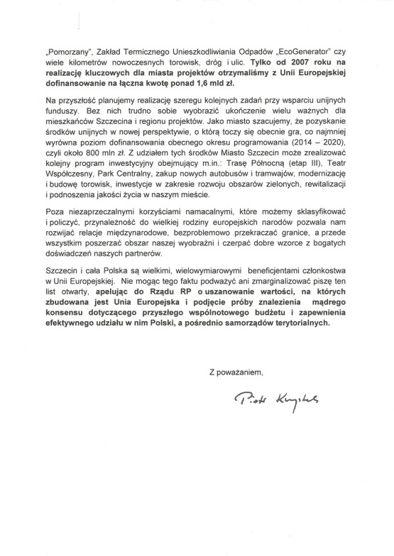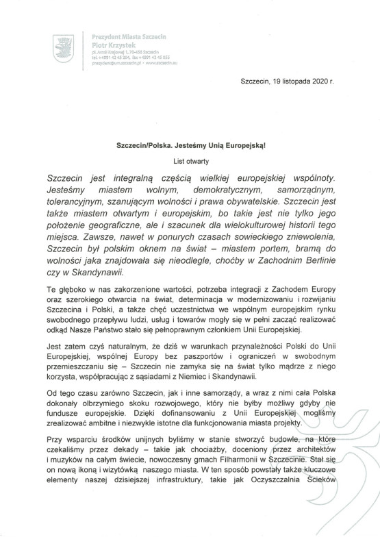 – Prezydent Szczecina z niepokojem przygląda się sytuacji związanej ze sposobem działania polskiego rządu, w odniesieniu do unijnego budżetu. Konsekwencje mogą okazać daleko idące, w konkretny sposób dotknąć polskich samorządów, w tym miasto Szczecin. Wierzymy, że mimo różnic w stanowiskach, władze osiągną porozumienie i nie doprowadzą do sytuacji, w której zagrożone będą kolejne projekty dofinansowywane z UE – mówi Łukasz Kolasa, rzecznik prasowy prezydenta Szczecina.