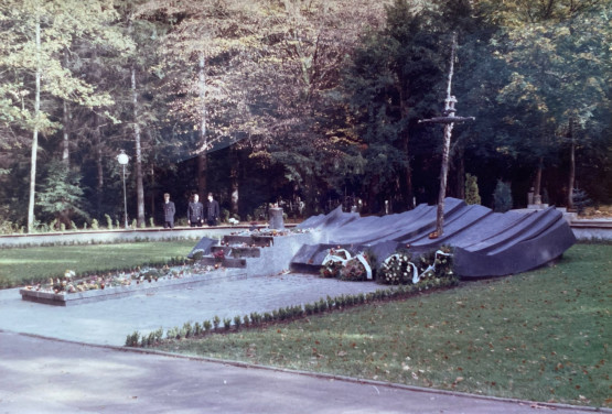 Załączam kilka fotografii, ukazujących pomnik na przestrzeni minionych lat. Oczywiście na zdjęciach zawsze są pewne przekłamania barw zależne od pory dnia i światła, ale łatwo można dostrzec, że nie pojawia się tam żaden odcień niebieskiego. Pocztówka, na którą powołuje się Szczeciński Klub Kapitanów Żeglugi Wielkiej jest podkolorowana i nie oddaje rzeczywistości. Aż trudno uwierzyć, że stanowi ona jedyną dokumentację fotograficzną stanu pierwotnego pomnika sprzed późniejszych renowacji.
