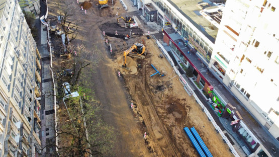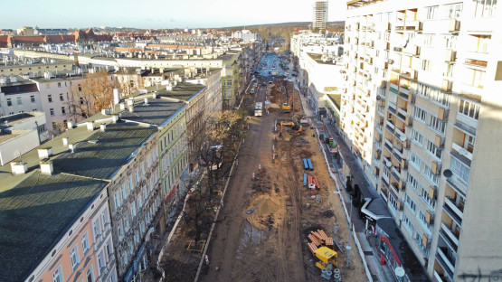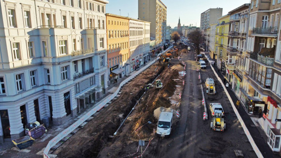 W pierwszym etapie budowlańcy zajęli się odcinkiem między ul. Jagiellońską a pl. Zgody. Od dawna zerwana jest tam nawierzchnia, przez plac budowy przejazd mają tylko autobusy. Jakie prace są tam obecnie wykonywane?