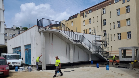 W nowym budynku A zaplanowano 30 mieszkań. Na dole będzie lokal przeznaczony na potrzeby usług społecznych oraz żłobek. W ostatnich tygodniach zakończono tam między innymi montaż fasady zewnętrznej, stolarki oraz balustrad.