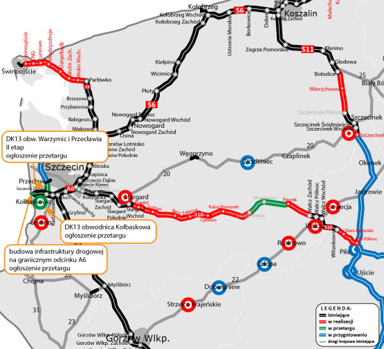 – Rozpoczynamy kolejne inwestycje, które przede wszystkim usprawnią komunikację i pozwolą na wyprowadzenie ruchu z obszarów zamieszkanych, poprawiając sytuację mieszkańców. Niezwykle istotne znaczenie będzie miała też budowa nowego węzła Szczecin Zachód na autostradzie A6, który pozwoli kierowcom dostać się na przyszłą Zachodnią Obwodnicę Szczecina, która stanowi inwestycyjny priorytet dla stolicy Pomorza Zachodniego oraz gmina sąsiednich i jest ważnym elementem docelowego układu drogowego północno-zachodniej części kraju – powiedział wiceminister infrastruktury Arkadiusz Marchewka.