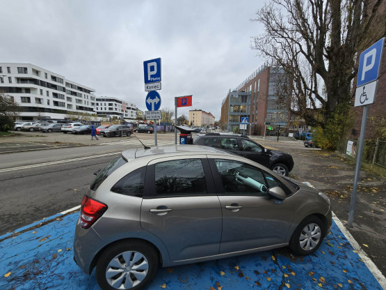 Rzeczywiście sytuacja jest skomplikowana. Siedziba PFRON mieści się w biurowcu ALOHA przy ulicy Janosika. Najbliższe miejsce postojowe dla osób z niepełnosprawnościami znajduje się, co policzyliśmy, 301 kroków od głównego wejścia do siedziby. To jedyne miejsce nieopodal wejścia do budynku Uniwersytetu Szczecińskiego.