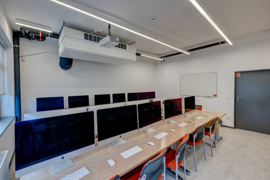 Ciekawym rozwiązaniem jest sala hybrydowa dająca możliwość realizacji zajęć ze studentami oraz wykładowcami z innych Wyższych Szkół Bankowych, a wkrótce ma powstać jeszcze sala kreatywna.
