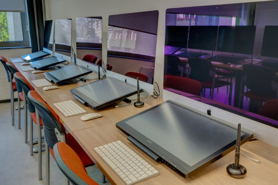 Do dyspozycji studentów jest m.in. 10 sal komputerowych, w tym laboratorium grafiki komputerowej, dwa laboratoria techniczne, sale dydaktyczne multimedialne – z kamerami, nagłośnieniem i monitorami interaktywnymi, 2 sale streamingowe, aula na 300 miejsc, biblioteka i bufet.