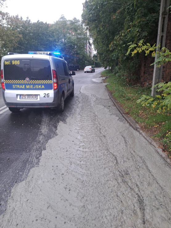 Ta nietypowa ścieżka doprowadziła ich do charakterystycznego pojazdu z tzw. gruszką, z którego wciąż lał się beton. – Na kierowcę betoniarki nałożono mandat za zanieczyszczenie – informuje st. insp. Joanna Wojtach, rzecznik Straży Miejskiej Szczecin.