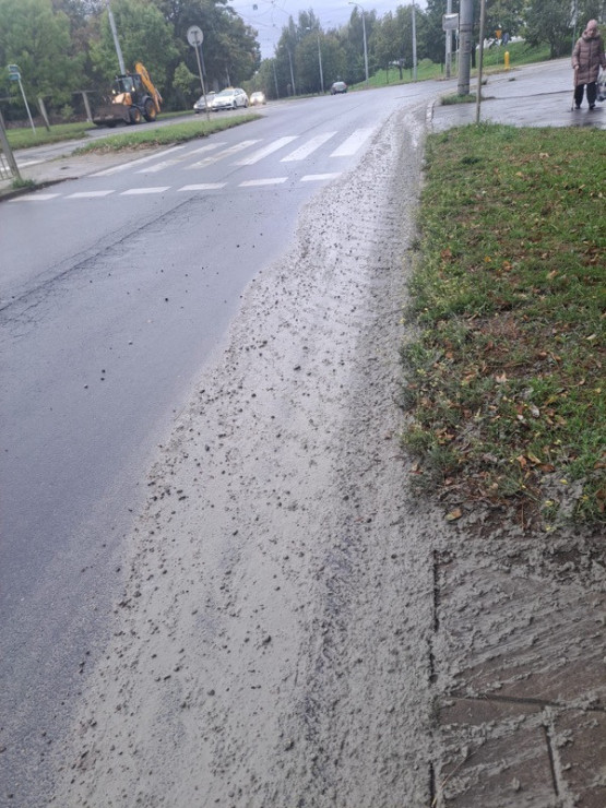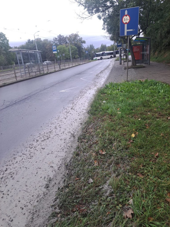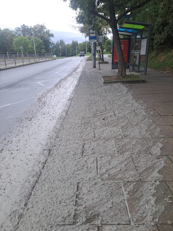 Beton rozlał się od ulicy Strzałowskiej na Golęcinie, aż po ulicę Robotniczą na Żelechowej. – To odcinek prawie 1000 metrów, po drodze widać było zanieczyszczoną drogę, pobocze, ochlapany zabytkowy mur oraz przystanek autobusowy – relacjonuje Joanna Wojtach.