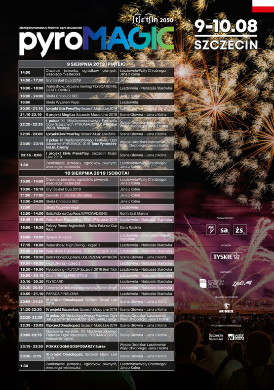 Od 2008 roku na Wałach Chrobrego w Szczecinie mogliśmy podziwiać widowiskowe pokazy pirotechniczne w wykonaniu prawie 30 ekip z całego świata. W tym roku będziemy gościć firmy z Czech, Malezji oraz Francji. W roli gospodarza, tak jak w poprzednich latach, wystąpi SUREX Firma Rodzinna z Bielska-Białej.