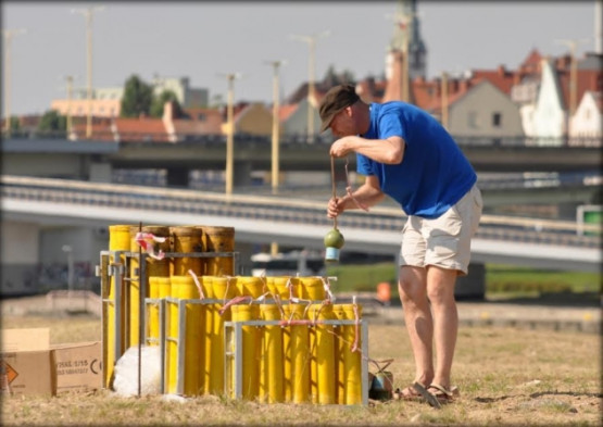 Pirotechnicy pracują spokojnie i w pełnym skupieniu. Dopracowują każdy, nawet najmniejszy szczegół tak, by wszystko zostało zapięte na przysłowiowy „ostatni guzik”. Do przygotowania tegorocznych pokazów fajerwerków, zużyte zostaną 4 tony masy pirotechnicznej oraz 8 ton dodatkowego osprzętu. By to wszystko mogło bezpiecznie dojechać na Wyspę Grodzką, potrzebne były 2 TIRy oraz 4 busy.