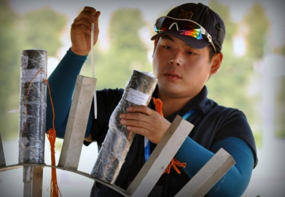 Poszczególne ładunki muszą być odpowiednio rozłożone, ponieważ każda, nawet najdrobniejsza pomyłka może zniszczyć wszystko co znajduje się w odległości od 5 do 10 metrów. Ładunki pirotechniczne ustawia się w stelażach, do których podłączone są zapalniki. Fajerwerki odpalane są synchronicznie z dokładnością co do jednej tysięcznej sekundy.
