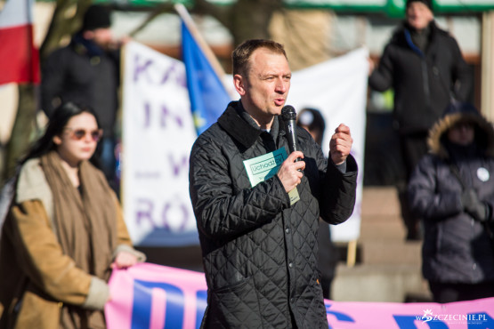 Na placu Lotników zgromadziło się ok. 100 osób. Organizatorami demonstracji były organizacje: Inicjatywa Polska Szczecin, Jedzenie Zamiast Bomb, Lambda Szczecin, Reefuges Szczecin, Partia Razem, Partia Zieloni, Pracownicza Demokracja. Głos zabrali także m.in przedstawiciele KOD'u, Dziewuchy Dziewuchom oraz Sławomir Nitras, kandydujący na prezydenta Miasta Szczecin.