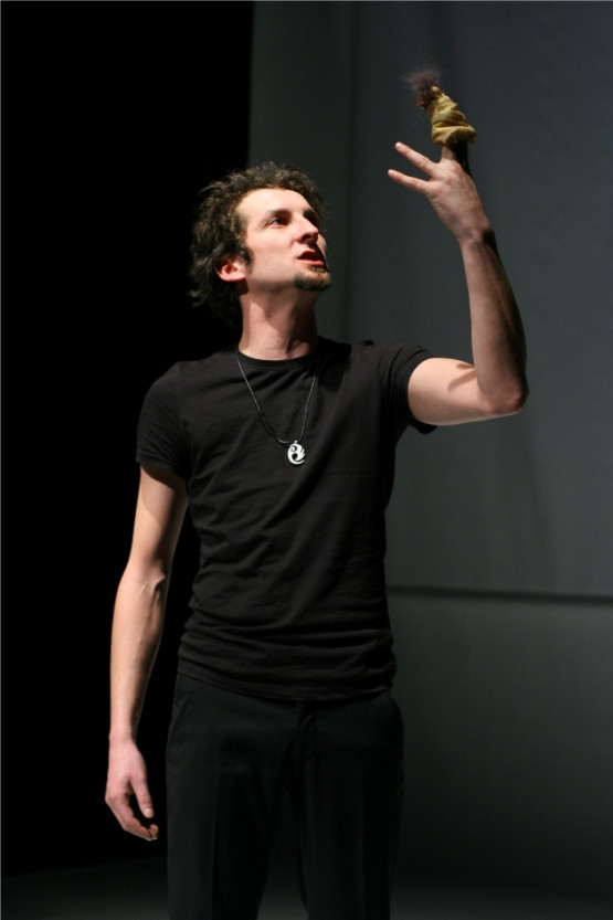 Reżyserka przedstawienia (Agata Biziuk) wprowadziła do niego elementy współczesnego teatru lalkowego. Są to postacie babci Kandydata 1 i ojca Kandydata 2, które również odgrywa Hajdukiewicz, manipulując miniaturowymi stworkami i odtwarzając ich piskliwe głosy. Te dialogi dodają humorystycznych akcentów spektaklowi. Poza tym jest on urozmaicony multimedialnymi sekwencjami, prezentowanymi na ekranie nad sceną (ich autorem jest Maciej Mizgalski). Porządkują one niejako treść całego przekazu, a także w dosadny nie raz sposób odzwierciedlają myśli i sytuacje, które występują w „Szczurze”.