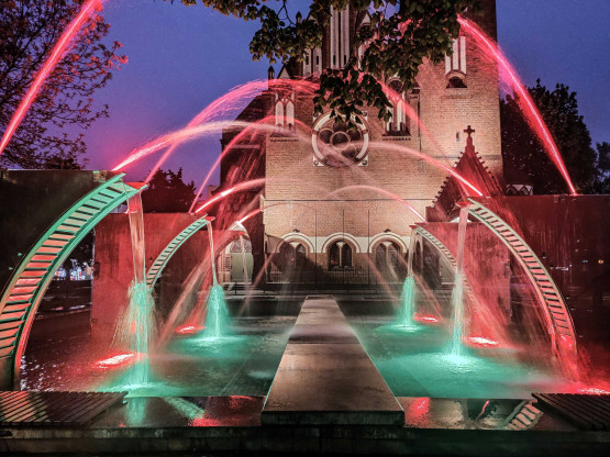 Widowisko na placu Zwycięstwa rozpoczyna się, gdy zrobi się ciemno, obecnie około godziny 21:20. Pokaz trwa kilka minut. Między kolejnymi mamy 10 minut przerwy. I tak do godziny 5 rano, kiedy podświetlenie jest wyłączane.