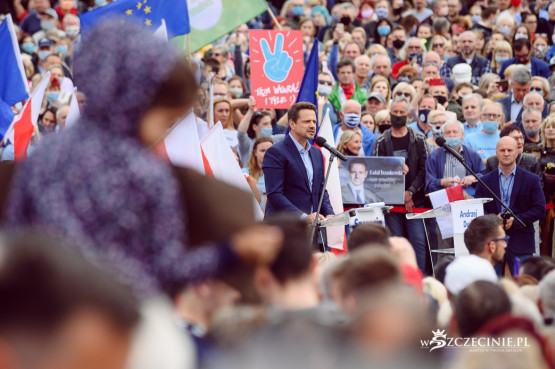 – Chciałbym w Szczecinie opowiedzieć o tym, jak wyobrażam sobie Polskę, którą możemy razem zbudować. Marzę o Polsce, która jest jak Szczecin: otwarta, tolerancyjna i niepokorna. Marzy mi się kraj, w którym ludzie mają twarde kręgosłupy i nie poddają się opresyjnej władzy – kontynuował Trzaskowski. – Marzy mi się kraj, w którym politycy wiedzą, że ziemia jest okrągła i dzieci trzeba szczepić. Marzy mi się kraj, w którym nikt nie odwraca się tyłem do kryzysu klimatycznego, gdzie jasno się mówi o wyzwaniach cywilizacji. Nas jest tak wielu, że nikt nie jest w stanie nas przekrzyczeć. Wiecie na czym powinna polegać zmiana? Jak ktoś jest ciekawy czy różnorodny, to zaprasza się go do stołu, a nie się go obraża. Taki kraj zbudujemy.