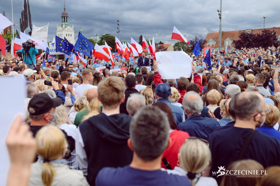 Zwolennicy Rafała Trzaskowskiego po południu niemal szczelnie wypełnili plac Solidarności w Szczecinie. W naszym regionie kandydat Koalicji Obywatelskiej cieszy się dużą popularnością. Wygrał tu w pierwszej turze wyborów z Andrzejem Dudą. Spotkanie w środę miało charakter wiecowy, choć Trzaskowski wielokrotnie odnosił się do swoich planów i tego, dlaczego według niego w Pałacu Prezydenckim powinna nastąpić zmiana. Wiec otworzył marszałek województwa Olgierd Geblewicz, który podziękował mieszkańcom za poparcie: