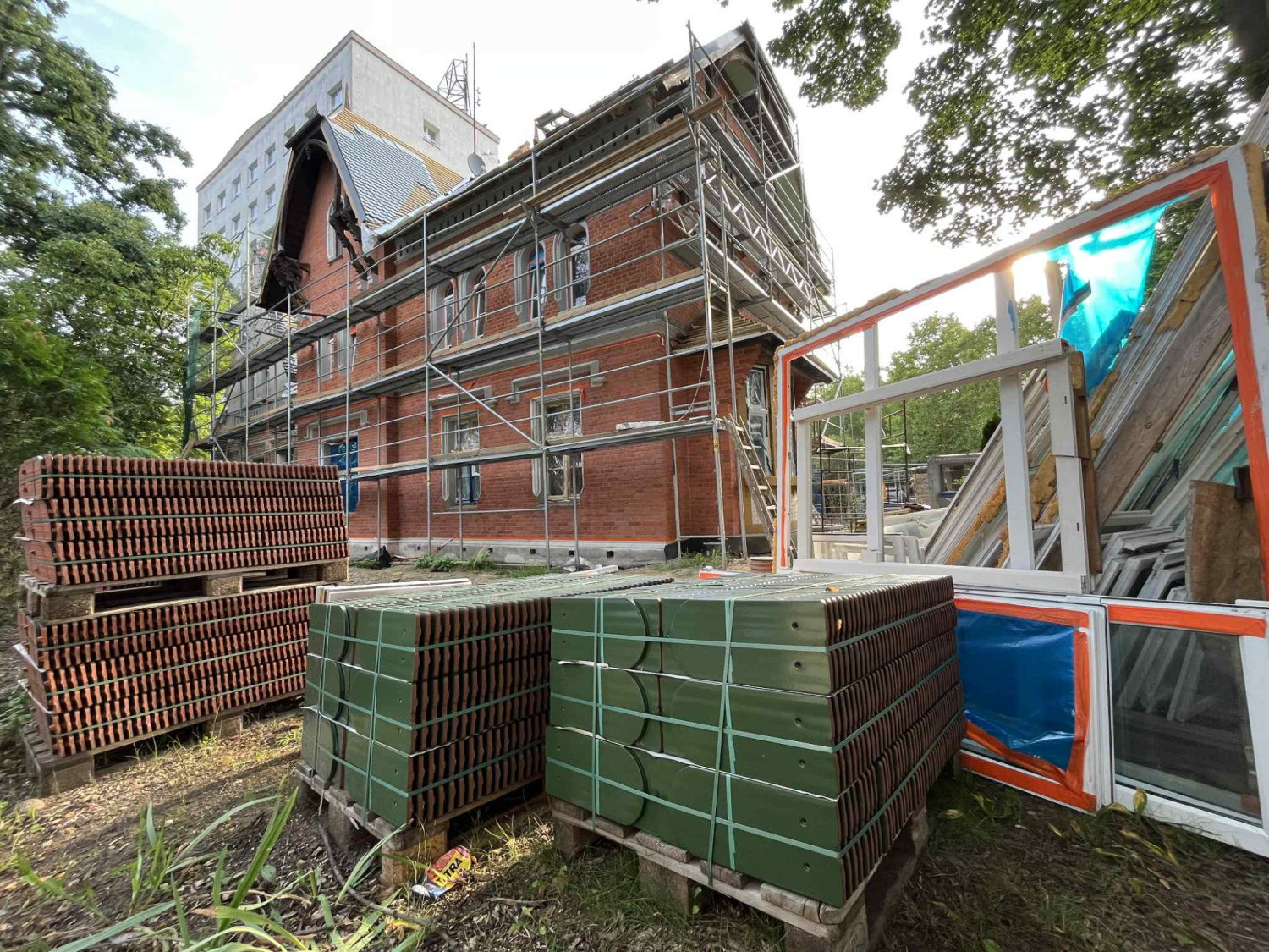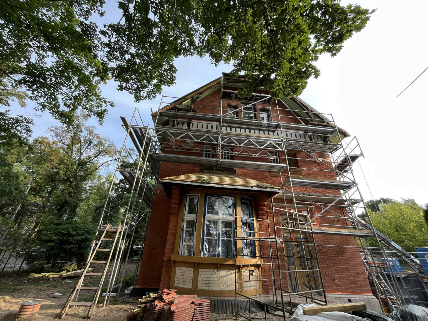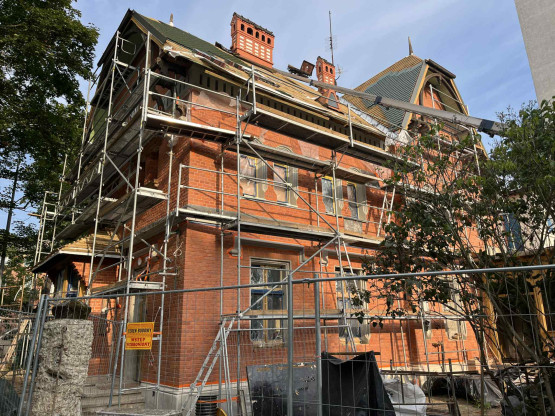 Przywrócony zostanie także historyczny kolor dachówek. Istniejącą, w kolorze czerwonym, zastąpi szkliwiona zielona karpiówka układana w łuskę. Bez zmian pozostanie oryginalna kolorystyka gąsiorów (czerwień winna glazurowana). Zakończenie dodatkowych prac planowane jest we wrześniu 2025 roku.
