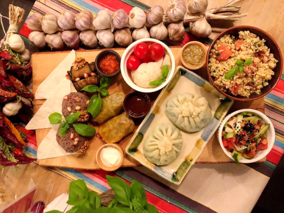 Mamy przygotowane zestawy dla 2 osób. To jest nasza propozycja, ale można również zamawiać pojedyncze pozycje z menu. Zarówno wegetarianie, jak i osoby jedzące mięso znajdą coś dla siebie. W menu są klasyczne kaukaskie szaszłyki, chinkali ze szpinakiem czy chaczapuri z serem. Całą kartę, którą proponujemy w ten weekend można zobaczyć poniżej.