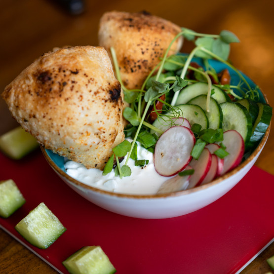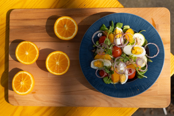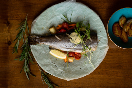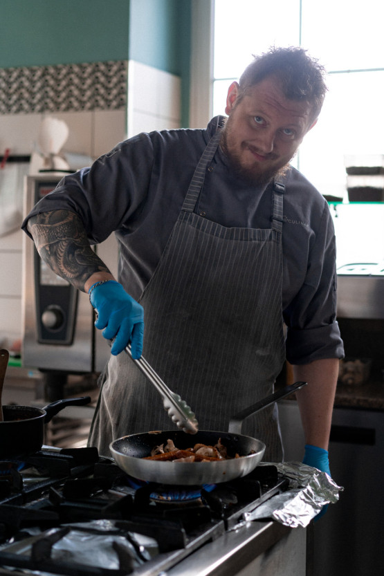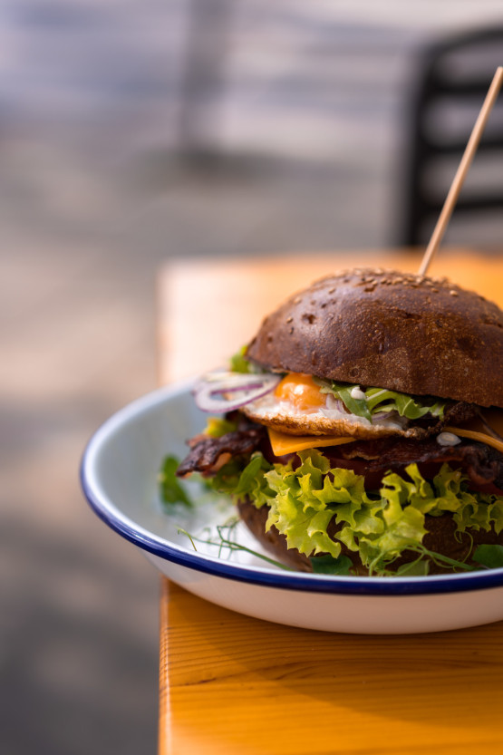 Goście przyjeżdżają na śniadania z wypiekanym na miejscu pieczywem (serwowane przez cały dzień). Zamawiają domowe pierogi, tatara, schabowego z zasmażaną kapustą, chrupiącą pizzę rzymską czy autorskie burgery szefa kuchni – Kamila Zdziecha. W menu znajdą też domowe ciasta, desery i lemoniady słodzone miodem, a latem kompot z jabłek z miętą.