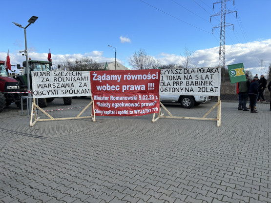 Rolnicy prowadzący rodzinne gospodarstwa rolne sprzeciwiają się przedłużeniu na kolejne 20 lat dzierżawy 700 hektarów gruntów uprawnych w gminie Banie, którą użytkuje PRP Babinek. W poniedziałek oficjalnie rozpoczęli miesięczny protest rotacyjny, który zapoczątkowali przejazdem ciągników pod szczeciński oddział Krajowego Ośrodka Wsparcia Rolnictwa przy ul. Bronowickiej.