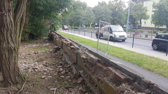 Zdemontowano już stare zniszczone przęsła, zburzone zostaną też rozpadające się murki. Następnie, gdy grunt zostanie odpowiednio zagęszczony, pojawią się nowe podbudowy, przęsła, brama oraz furtka. Odtworzony zostanie pierwotny wygląd ogrodzenia, nie zmieni się jego forma ani wielkość.