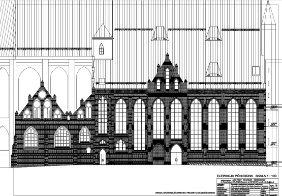 „Całkowicie zniszczona część północna została odbudowana w latach 70-tych ubiegłego wieku w technologii częściowo uprzemysłowionej z założeniem, że z czasem obiekt otrzyma elewacje pozwalające lepiej zharmonizować go z pozostałą tkanką historyczną” – czytamy w projekcie budowlanym trwającej przebudowy, którego autorem jest architekt Sławomir Kiersnowski.