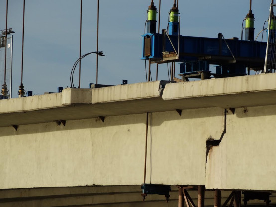 Most Cłowy został zbudowany w 1960 roku. Poważnej awarii uległ w maju. Uszkodzone zostały stalowe cięgna sprężające w przęśle od strony centrum (zachodnim). Od tamtego czasu przeprawa jest zamknięta.
