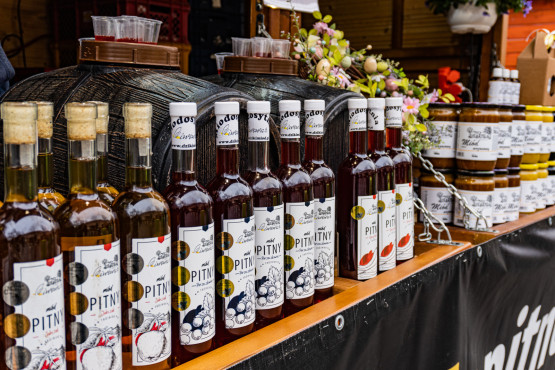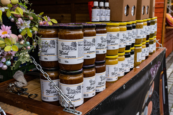 – Przyjechaliśmy z miejscowości Cychry, pod Kostrzynem nad Odrą, gdzie prowadzimy pasiekę „Dziki miód”. Mamy miody naturalne, ale najbardziej dumni jesteśmy z naszych miodów pitnych. Jesteśmy liderem jeśli chodzi o klasyfikację medalową miodów trójniaków półsłodkich. Naszą wizytówką jest porzeczkowiec – zachwala pan Rafał.