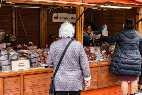 Nie brakuje także świątecznych przysmaków, tradycyjnych wędlin, serów, pieczywa i miodów. – Przyszedłem na samo otwarcie, bo później ma padać. Bardzo lubię te nasze jarmarki, jest nie tylko ładnie, ale i smaczne jedzenie można kupić. Przyszedłem oczywiście po to, co najlepsze, czyli wędliny i miody. Wraz z żoną zaczynamy przygotowania do świąt – opowiada z uśmiechem pan Zygmunt.