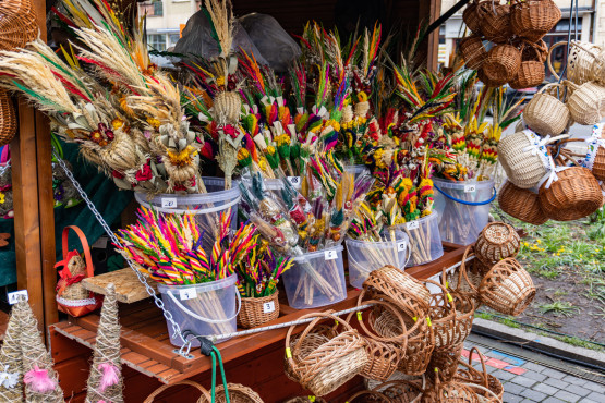 – Przez całą Polskę musieliśmy przyjechać, aby tu trafić – śmieje się. – Mamy palmy małe i duże. Ceny zaczynają się już od 3 złotych. Oprócz tego mamy zające z siana, koszyki wiklinowe, serwety, palmy żywe, ozdoby do koszyczków. Wszystko ręcznie robione – opowiada.