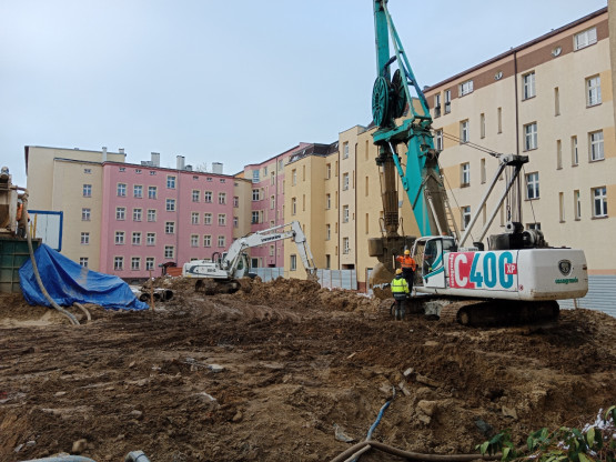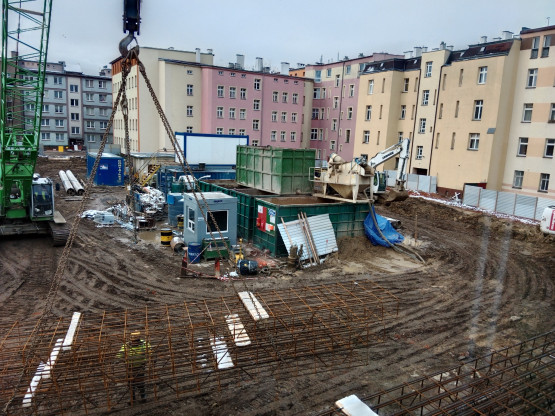 Prace już się rozpoczęły. Realizowane są roboty ziemne związane m.in. z budową parkingu podziemnego oraz porządkowaniem uzbrojenia, sieci wodociągowych i cieplnych. Wykonywane są ścianki szczelinowe, które pozwolą zabezpieczyć wykopy do budowy części podziemnych nowych obiektów. Prace wykonywane są z użyciem ciężkiego sprzętu, co wiąże się z uciążliwościami dla okolicznych mieszkańców.