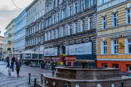 To budynek, na którym od lat wisi grafika Szczecińskiego Centrum Renowacyjnego (nieistniejąca już miejska spółka), prezentująca planowany efekt modernizacji całego deptaka. Sam musiał jednak długo czekać na remont.