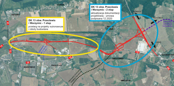 Zanim jednak tutaj rozpoczną się prace budowlane, konieczna jest aktualizacja dokumentacji projektowej. Związane jest to m.in. z planami realizacji obwodnicy Kołbaskowa, która została wpisana do programu budowy 100 obwodnic w Polsce. Rozpocznie się ona w węźle Szczecin Zachód, będąc kontynuacją obwodnicy Przecławia i Warzymic.