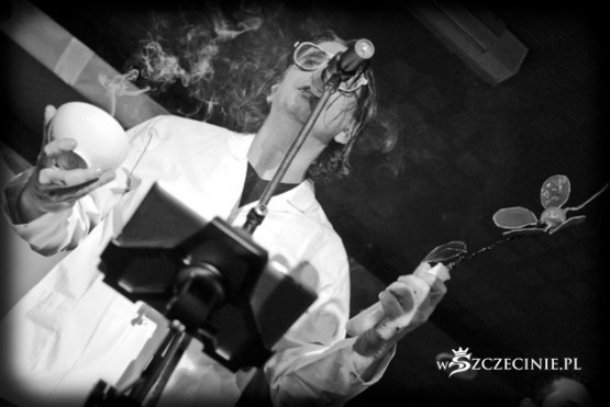 Użyłem słowa spektakl, bo faktycznie nie był to zwykły występ. Yogi niemalże w każdym utworze przywdziewał nowy strój. Pokazywał się z opaską na oczach, z plastikowym kwiatem w ręku, czy nawet z garbem na plecach, ilustrując w ten sposób śpiewane teksty. W pewnym momencie przeszedł się wzdłuż pierwszego rzędu widzów delikatnie polewając ich głowy wodą z kropidła. Grał także w niektórych fragmentach na klawiszach oraz komentował niektóre kompozycje w drugiej części występu.