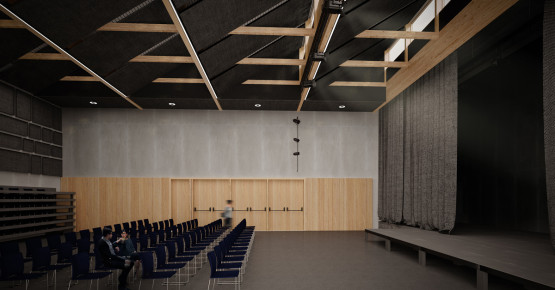 - scena kameralna z widownią na 200 osób z przeznaczeniem na organizację spektakli, przedstawień, koncertów, uroczystości i konferencji,