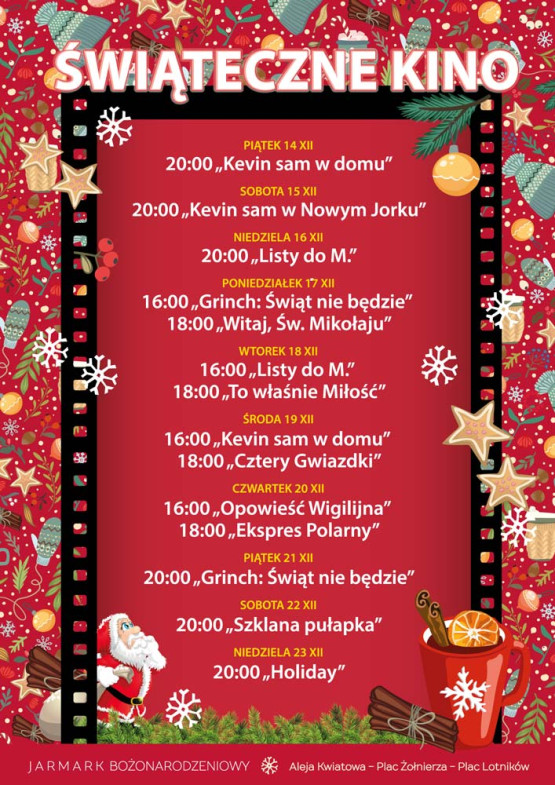 Jeszcze jedną nowością tegorocznego Szczecińskiego Jarmarku Bożonarodzeniowego jest „Świąteczne kino pod kocykiem”. Hala namiotowa, która stanęła na pl. Lotników wieczorami będzie zamieniać się w salę kinową. Każdego wieczoru będą w niej wyświetlane świąteczne hity. Już dziś zaplanowano projekcję „Kevina samego w domu”, w sobotę (15 grudnia) będzie okazja obejrzeć „Kevina samego w Nowym Jorku”, a w niedzielę (16 grudnia) - „Listy do M.”. W pozostałe dni w repertuarze znalazły się takie filmy jak: „Opowieść wigilijna”, „Grinch: Świąt nie będzie”, „Ekspres Polarny” czy „To właśnie miłość”. W ten weekend (14 – 16 grudnia) pokazy zaplanowano o godz. 20:00. Wstęp jest oczywiście bezpłatny.