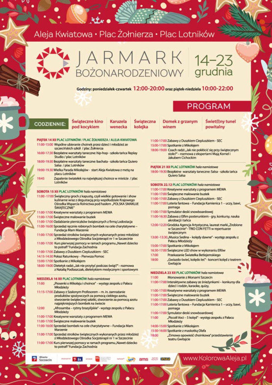To największy, a zarazem najdłużej trwający bożonarodzeniowy jarmark w Szczecinie. Potrwa aż 10 dni - od piątku, 14 grudnia, do niedzieli, 23 grudnia. W tym czasie na odwiedzających Aleję Kwiatową, pl. Lotników oraz pl. Żołnierza Polskiego będzie czekała cała masa świątecznych atrakcji.