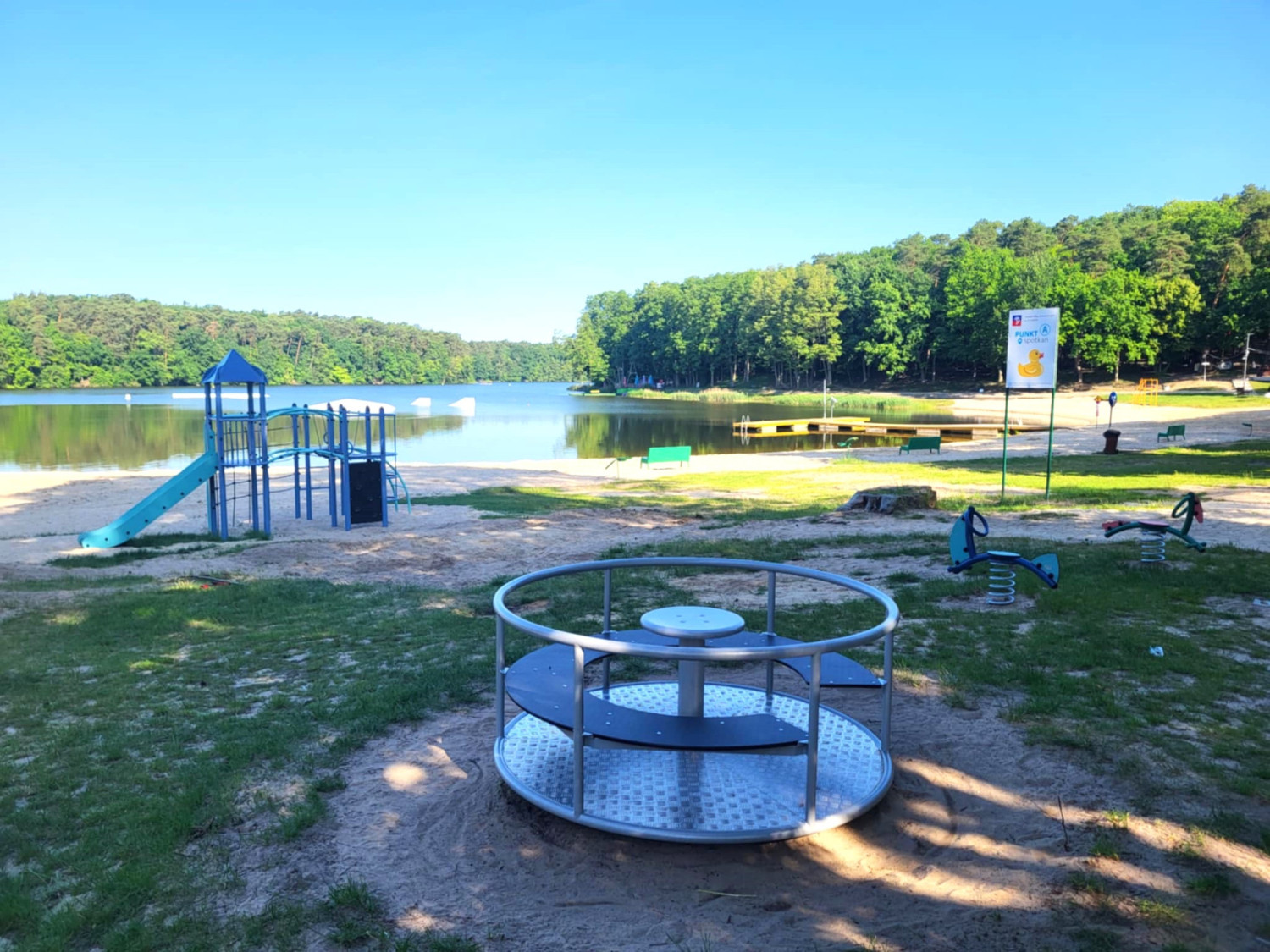 Kąpielisko Dziewoklicz również ma pomieszczenia sanitarne, małą gastronomię, a dla najmłodszych – kolorowy zestaw zabawowy „statek” ze zjeżdżalniami, drabinkami, mostkami, tunelami.