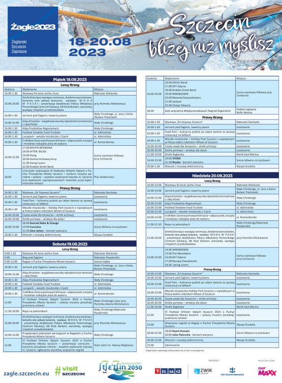 Szczegółowe informacje na temat żeglarskiego święta znajdują się na stronie https://zagle.szczecin.eu/.