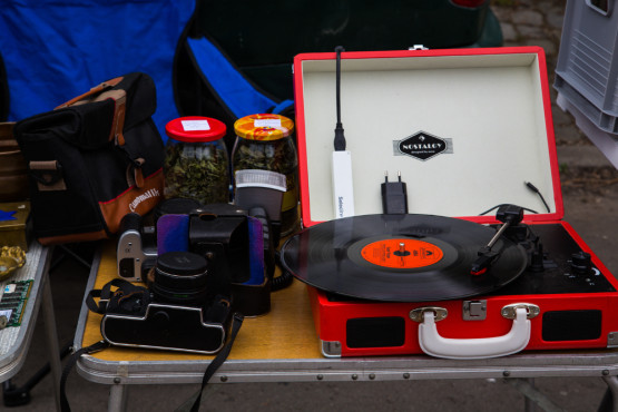 Pchli targ na Łasztowni dopiero rozpoczyna swoją działalność, więc z kolejnymi odsłonami z pewnością będzie przybywać wystawców. Na stoiskach tych, którzy pojawili się na imprezie w sobotę, można było znaleźć m.in.: naczynia, obrazy, mosiężne figurki, lampy, sporo płyt winylowych, świeczniki, zegary, dawny sprzęt fotograficzny, ozdoby, zdarzały się też meble. Było też stoisko Pogoni Szczecin, gdzie z kilkudziesięcioprocentowym rabatem można było kupić np. koszulki z ulubionych kolekcji Dumy Pomorza, zestawy treningowe dla dzieci, nastolatków i dorosłych, meczówki, a także wiele innych rozmaitości.