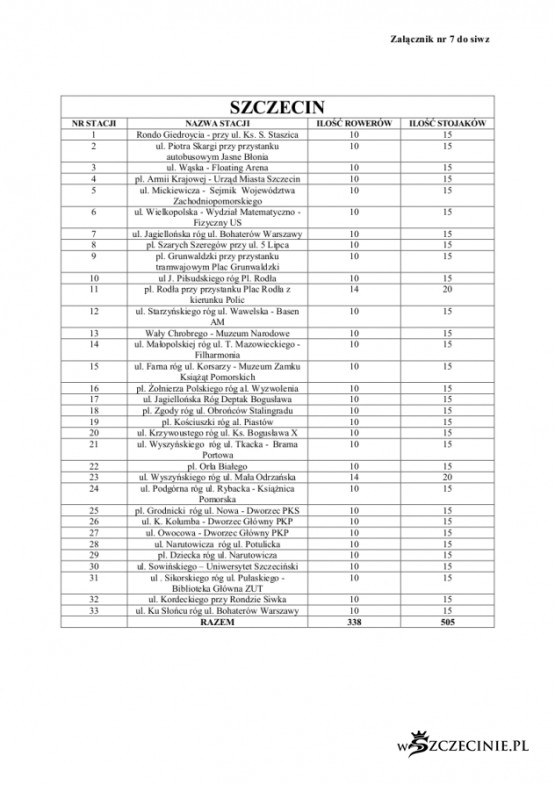 Od momentu podpisania umowy wykonawca będzie miał trzy miesiące na zrealizowanie zadania. Zwycięska firma będzie musiała dostarczyć 33 stacje i wyposażyć je w 505 stojaków oraz 360 rowerów. Szczegóły dotyczące lokalizacji stacji rowerowych poniżej.